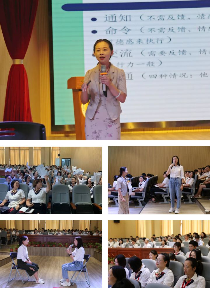 卜雪梅老師以《溝通的藝術和技巧——如何說別人才愿意聽》為題,邊講授邊與現場教師互動交流,她結合自身多年從事心理健康教育研究工作中的真實案例,詳細分析了不同的情境下,由不同的溝通方式產生的不同結果,并為在座老師提供了八種有效溝通的要訣,幫助老師們更有效地實現與學生、家長、同事的良好溝通。