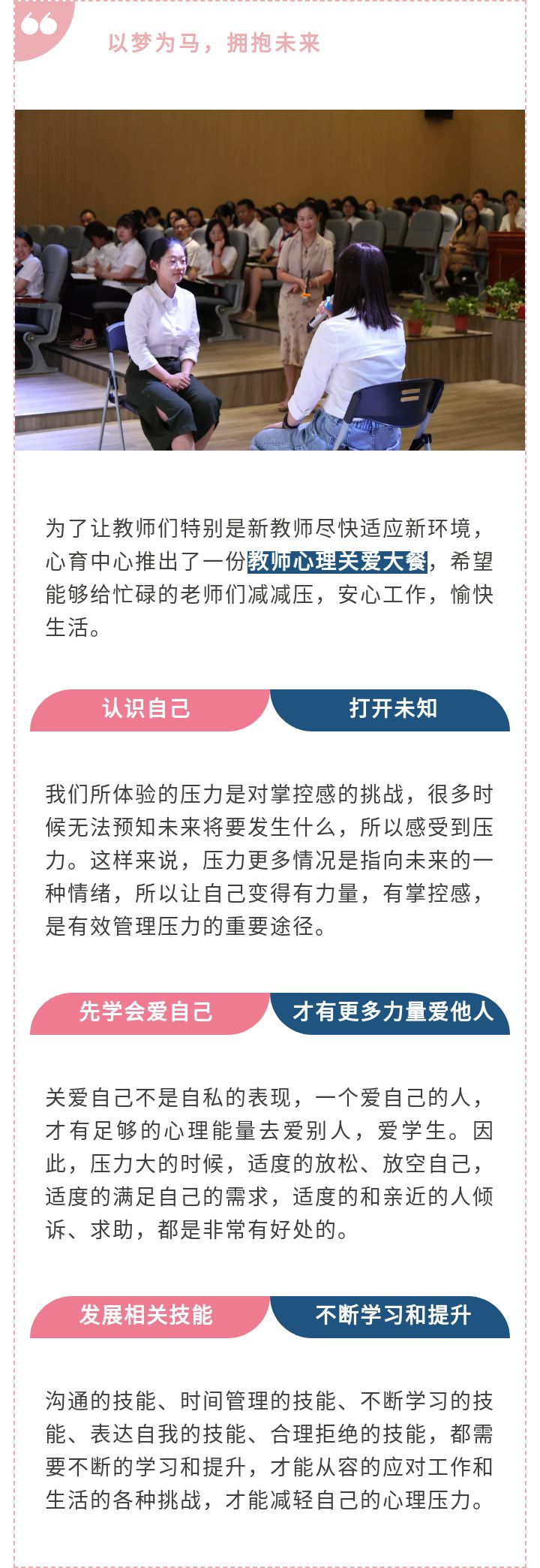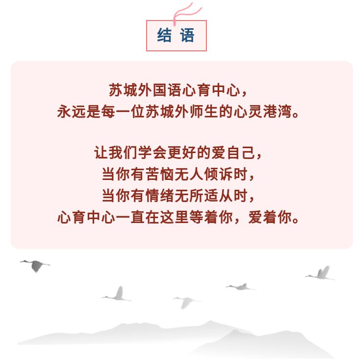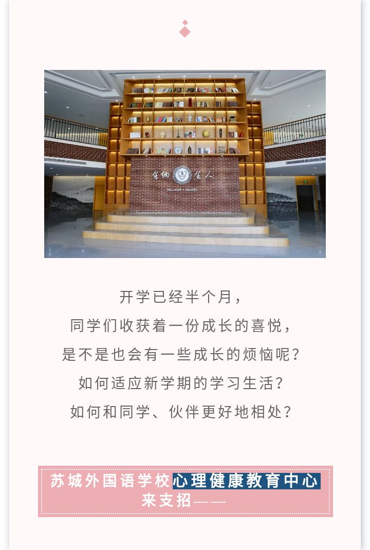 蘇城外心育中心一直踐行著“全納 全人”的校訓,為每一位學生定制個性化的心理服務,不管是平時的課程還是對于學生的個別輔導,心育中心都在呵護著每一位學生健康成長。