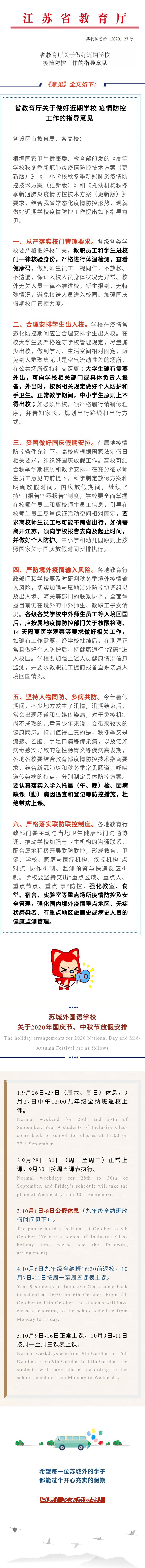 SCFLS關(guān)于2020年國慶節(jié)、中秋節(jié)放假安排及注意事項