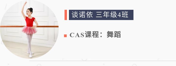 來到美麗的蘇城外就選修了舞蹈表演這門CAS課程。我喜歡舞蹈,舞蹈不僅能夠陶冶情操還能愉悅心情。我還喜歡和小伙伴一起排練節目,雖然有時會很辛苦,但是和大家在一起跳舞就是最開心的事情。
