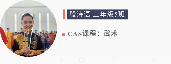 學習武術CAS課程已有兩年的時間,我非常喜愛這門課程,在這兩年中我深深的被中國傳統武術所吸引。今年9月24日我們武術團隊在相城區校園武術比賽中榮獲一等獎。習武強身健體,我會繼續努力。