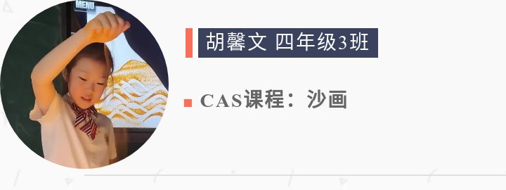 在沙畫CAS課程里,我學到了很多沙畫的手法,比如說漏沙、撒沙、勾沙、拍沙、抹沙等。在繪畫時,它能讓我內心舒緩下來,不那么心浮氣躁。而且讓我知道怎樣把一幅畫畫到極致,我找到了興趣愛好。