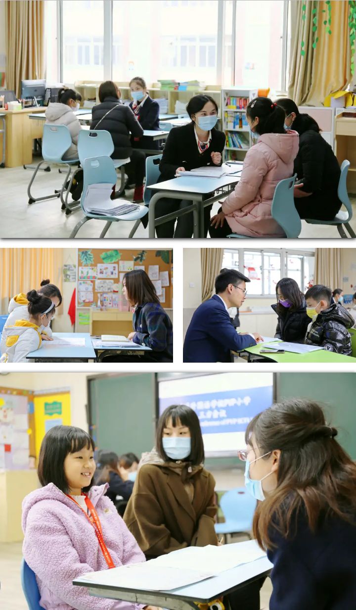 每個(gè)教室里,老師、學(xué)生、家長(zhǎng)三方圍坐侃侃而談。每組家庭的“暢談”,老師們用了一個(gè)學(xué)期時(shí)間來(lái)精心準(zhǔn)備——悉心了解每一位學(xué)生的特點(diǎn)、給予學(xué)業(yè)上針對(duì)性的專(zhuān)業(yè)支持,力求在會(huì)談中給到孩子和家長(zhǎng)最具體的個(gè)性化學(xué)習(xí)建議……