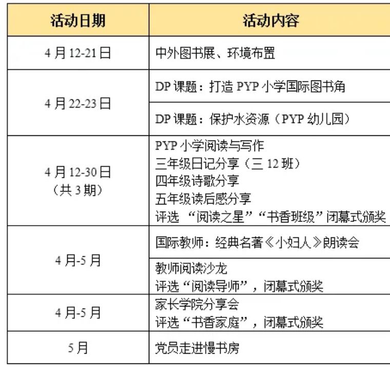今年的讀書節活動將圍繞“建黨百年”紅色主題,通過開展師生、親子共讀革命書籍《紅軍的故事》、《雷鋒日記背后的故事》等閱讀打卡、讀書沙龍等全方位、多層次的書香建設活動,激發全校師生閱讀興趣的同時學史明智,構建IB全人教育理念下的學習者社區,努力將每個孩子都培養成為民族復興、中華崛起合格的接班人。