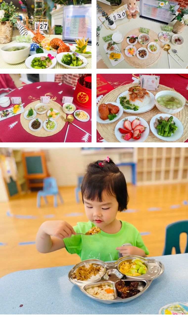打造安全、舒適、溫馨的多功能活動場室,滿足寶貝們的生長發(fā)展需求。全面升級的食譜、菜品是“光盤行動”的精髓,提供安全、健康、多元的飲食文化,更有專門為體弱、食物忌口幼兒定制的替換食譜。